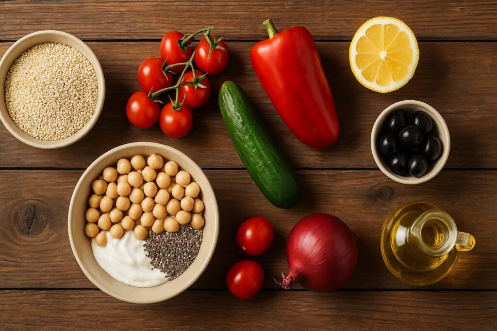Este plato combina lo mejor de la dieta mediterránea: legumbres, cereales integrales, aceite de oliva y verduras frescas. Es colorido, nutritivo y muy fácil de adaptar a lo que tengas en casa.